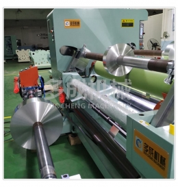 收卷方式為中心表面卷取,也可單軸復(fù)卷,收放卷軸為專用氣脹軸,分切系統(tǒng)采用動力圓刀配合刀槽輥